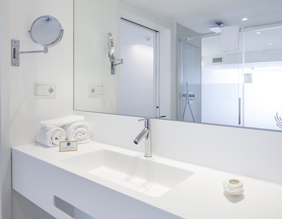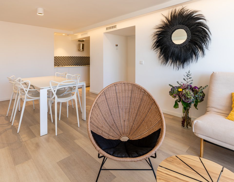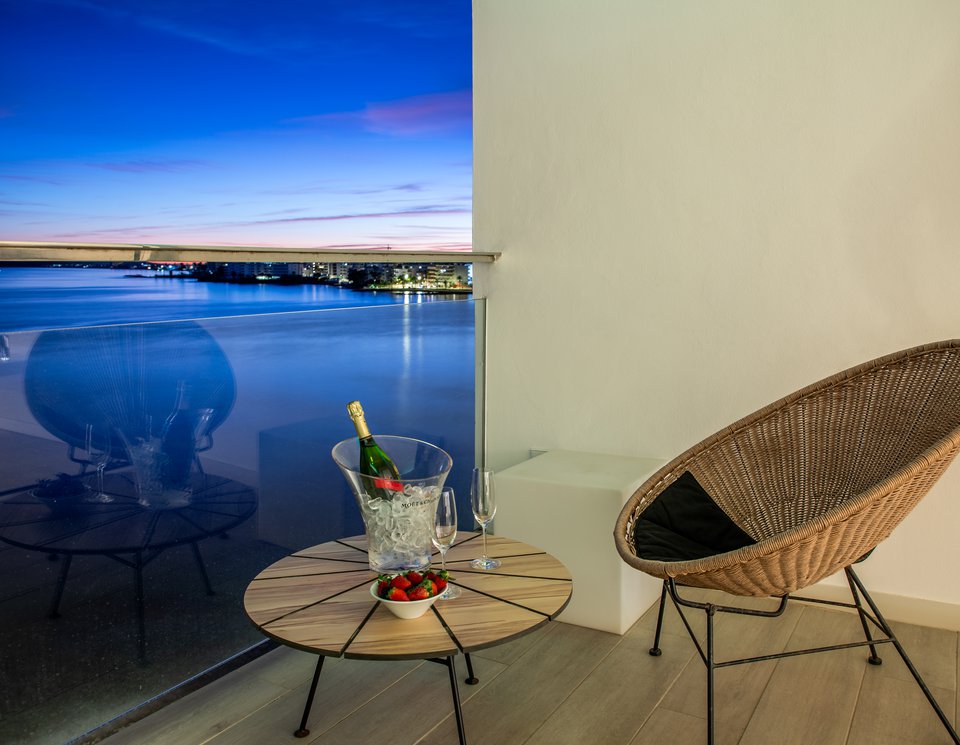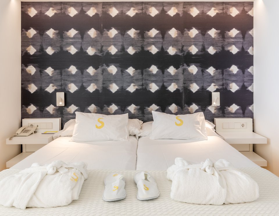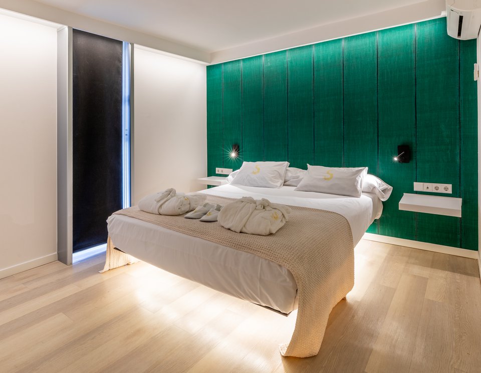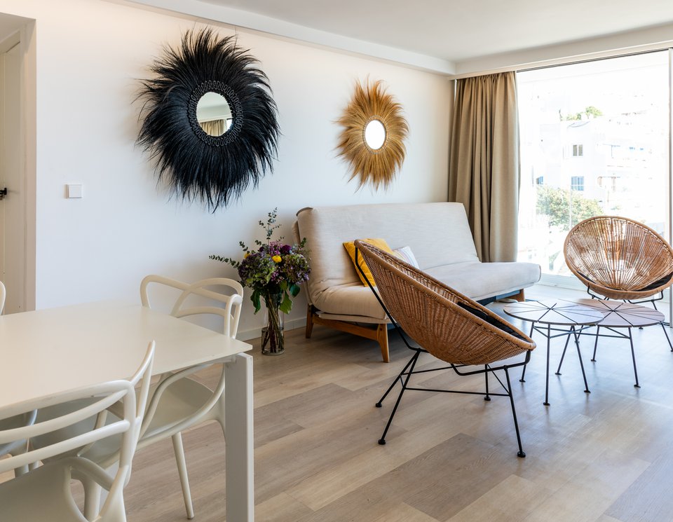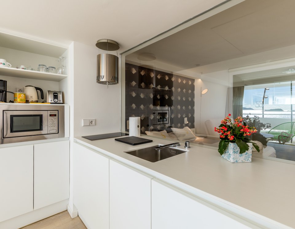 Sud Ibiza Suites is located on the popular Figueretas Beach, just a 15-minute walk (1.3 kilometers) from Dalt Vila, the historic center of the city. Ibiza’s port is 1.4 kilometers from the complex, and the island’s airport is only a 10-minute drive away (approximately 6 kilometers). Several of the world’s most famous nightclubs, such as Hï, Pacha, and UNVRS, are also just a few minutes’ drive from Sud Ibiza Suites. In addition, the renowned restaurant Ciento80 is located on the ground floor of the property itself.